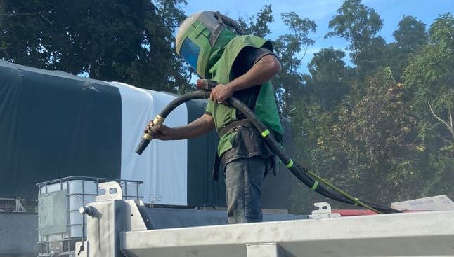 Our facility prioritizes safety and environmental responsibility by exclusively using crushed glass as our primary abrasive media for blasting operations. This modern approach eliminates the severe health hazards associated with traditional silica sand while still providing superior cleaning and surface preparation results.